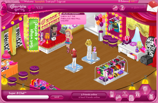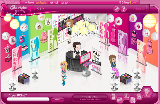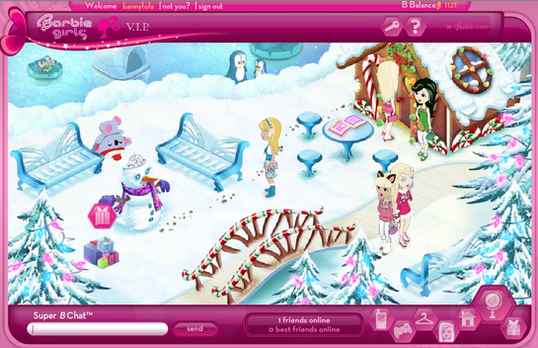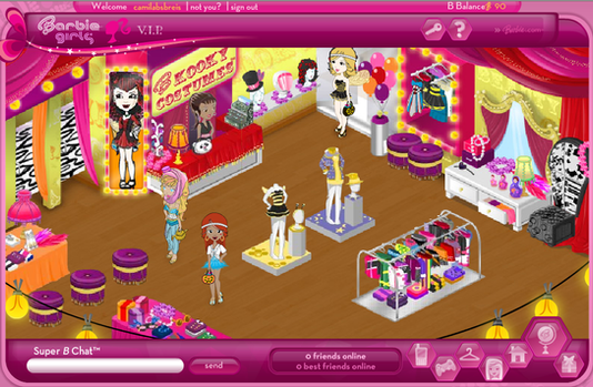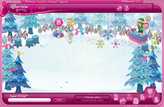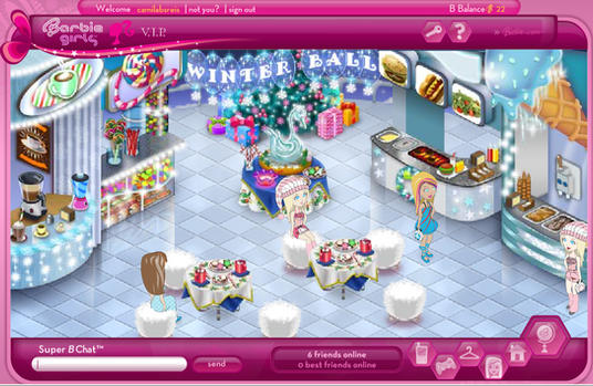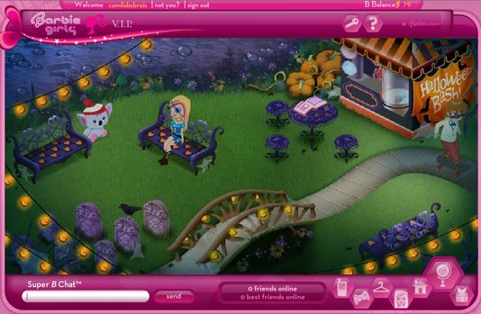 B Park was probably the most popular place for players to hang and chat. The park also had some amazing changes during special events, like a spooky setting at night at Halloween or a Winter Wonderland at Christmas. Players could also meet SkaterBoy, the original male character of the world of Barbie Girls! B Park also had the game Word Search!