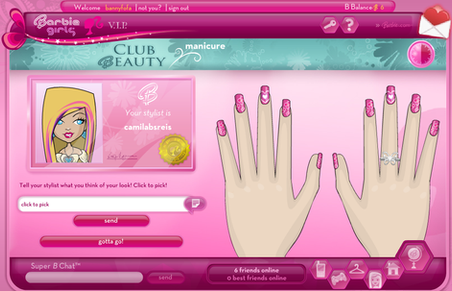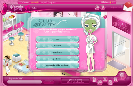 Club Beauty was one of the two original V.I.P. only places and it was one of the main seeling points of V.I.P. memberships and MP3 players, and it was one of the most unique things to do at the website and that helped make it so popular. Based on popular web games to do makeup and manicure, Club Beauty applied that to other players, where players could to makeovers or receive from others. The options were: hair, makeup, manicure, pedicure. there were 9 exclusive hairstyles from Club Beauty that players could keep until they changed their hair, same with the exclusive eyes and lips. The manicure and pedicure could not be seen after nor did the accesories added. Players could also give some feedback on the looks they received.